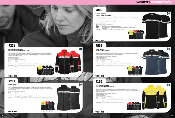 XS-3XL Quality: 60 % organic cotton, 40 % recycled polyester Colors: navy / black-5899, grey / black-9899, black / red-9935, black / black-9999 VIZ: black / yellow-9910 Certification: EN 17353 Class B2, VIZ black / yellow-9910 Class AB2