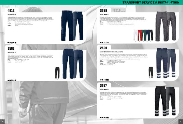 Classic servicepant in durable cotton. Side pockets, the right one with internal safety pocket with zip closure. Leg pockets, on the left side one spacious pocket with flap and Velcro closure and one phone pocket. On the right side pockets for pens, paper and folding rule. Back pockets. D-ring in front. Internal knee protection pockets( not adjustable). Size: