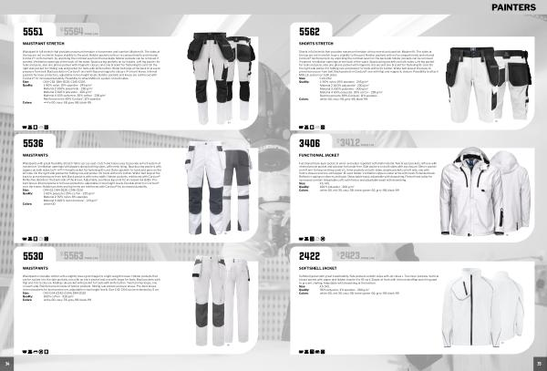 Quality: 1: 65 % polyester, 35 % cotton- 235 g / m 2 Material 2: 92 % nylon, 8 % spandex Material 3: 100 % nylon Cordura ®- 213 g / m 2