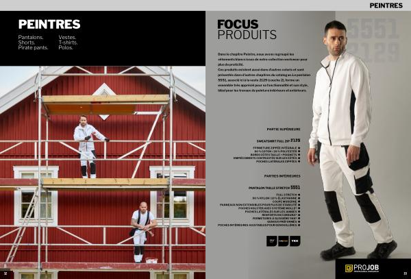 Dans le chapitre Peintre, nous avons regroupé les vêtements blancs issus de notre collection workwear pour plus de praticité. Ces produits existent aussi dans d’ autres coloris et sont présentés dans d’ autres chapitres du catalogue. Le pantalon 5551, associé ici à la veste 2129( couche 2), forme un ensemble très apprécié pour sa fonctionnalité et son style, idéal pour les travaux de peinture intérieurs et extérieurs.