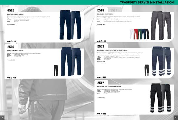 Pantaloni taglio jeans. Tasche e scomparti porta attrezzi. Porta ginocchiere. Profili rinforzati in Cordura ®. Taglie: C44 – C64, D84 – D120, C146 – C160 Tessuto: 60 % cotone, 40 % poliestere, 360 g / m 2.