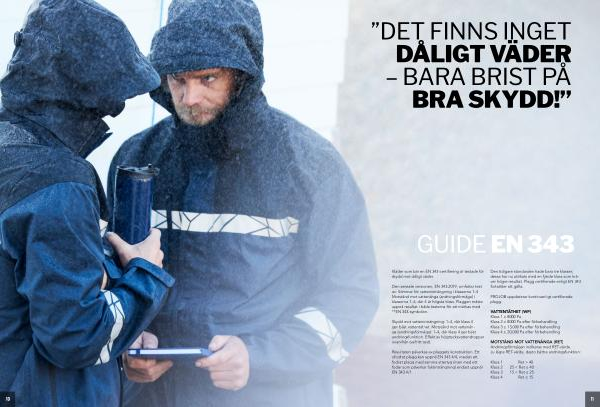 Kläder som bär en EN 343-certifiering är testade för skydd mot dåligt väder.