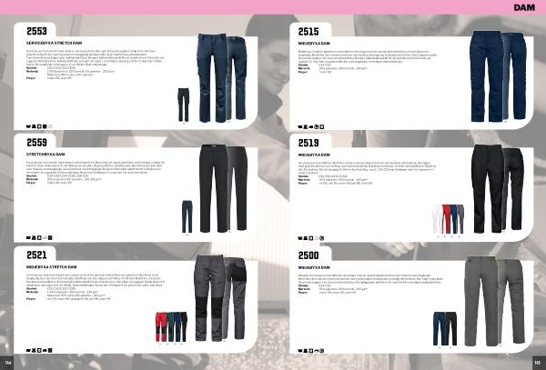 Servicebyxa med sidfickor. Benfickor, på den vänstra sidan med lock och kardborreförslutning, den högra med plats för pennor och verktyg, även tumstocksficka. Bakfickor med lock, försluts med kardborre. Färgerna röd-35, skyblue-53 och skogsgrön-66 har kontrastfärg i svart. C32-C50 kan förlängas med 5 cm genom ett utvik i benslutet. Storlek: C32-C50( C132-C150) Material: 65 % polyester, 35 % bomull- 245 g / m 2 Färger: vit-00, röd-35, marin-58, grå-98, svart-99