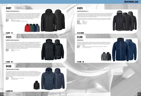 Vind- och vattentät jacka med uttagbar innerjacka. Tejpade sömmar. Ytterjackan har tvåvägsdragkedja framtill med slag på yttersidan för att förhindra vinddrag samt genomträngning av väta, försluts med tryckknappar. Vertikala bröstfickor med vattentäta dragkedjor, den vänstra med fäste för ID-kortshållare. Rymliga sidfickor. Reglerbar huva i två lägen, den är även avtagbar. Jackan är reglerbar med snodd i nederkant. Reglerbara ärmslut med kardborre samt invändig mudd med tumgrepp.