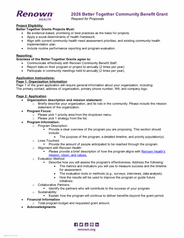 • Provide the amount of people anticipated to be reached through the program. o Alignment with Renown Health: