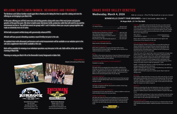 The Beckman and Callison families would again like to thank you for taking the time to open this catalog and view the offering we are bringing to you March 4th.