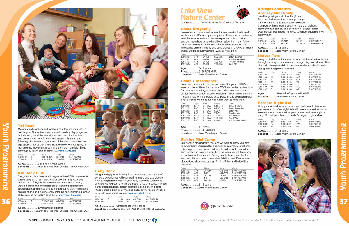 Age:................. 4-7 years Price:...............$ 133R /$ 136NR Location:........ Lake View Nature Center