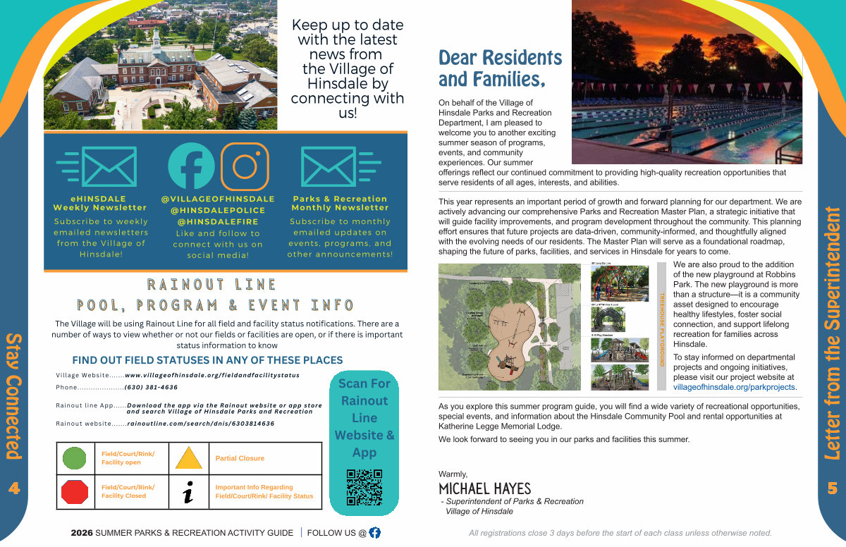 Rainout line App...... Download the app via the Rainout website or app store and search Village of Hinsdale Parks and Recreation