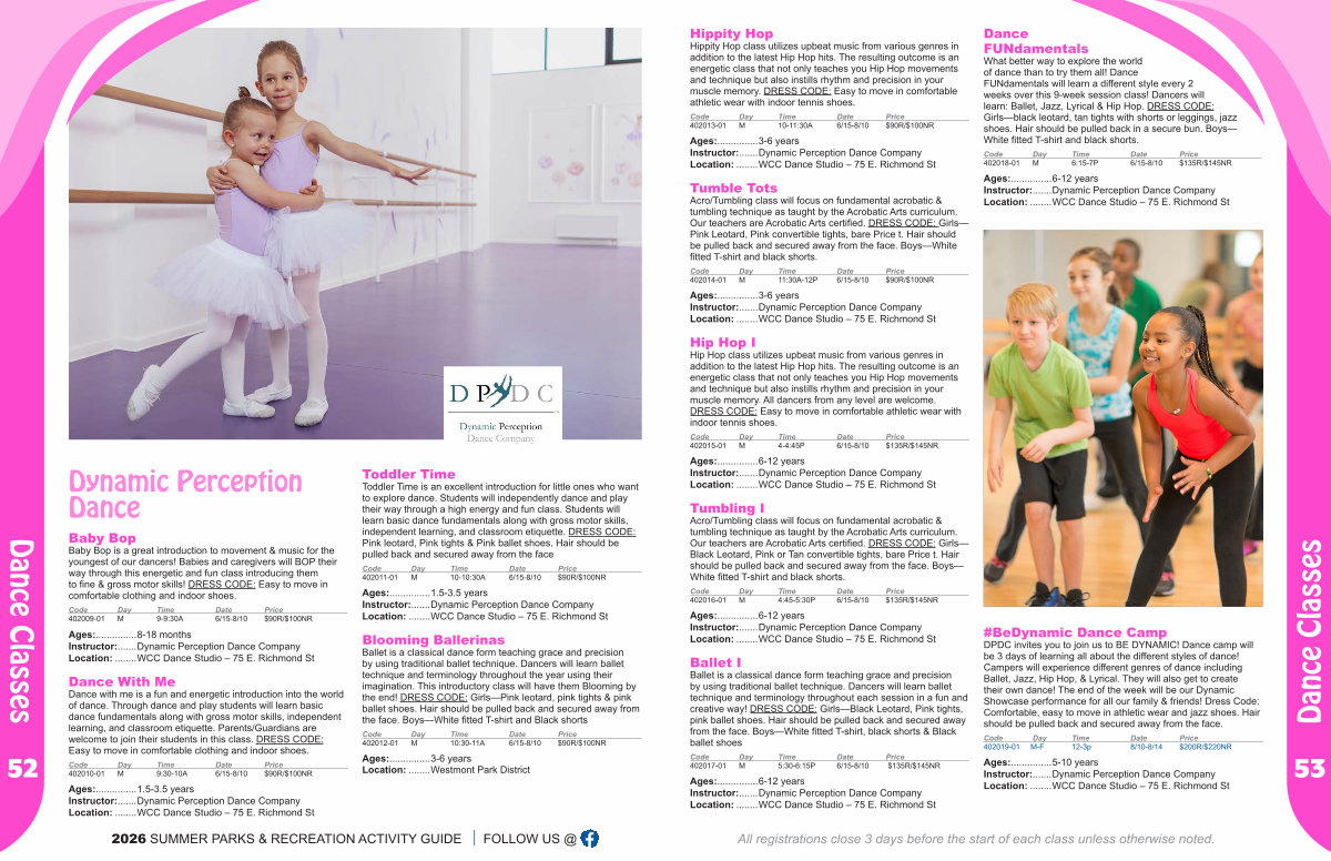 Ages:............... 8-18 months Instructor:....... Dynamic Perception Dance Company Location:........ WCC Dance Studio – 75 E. Richmond St