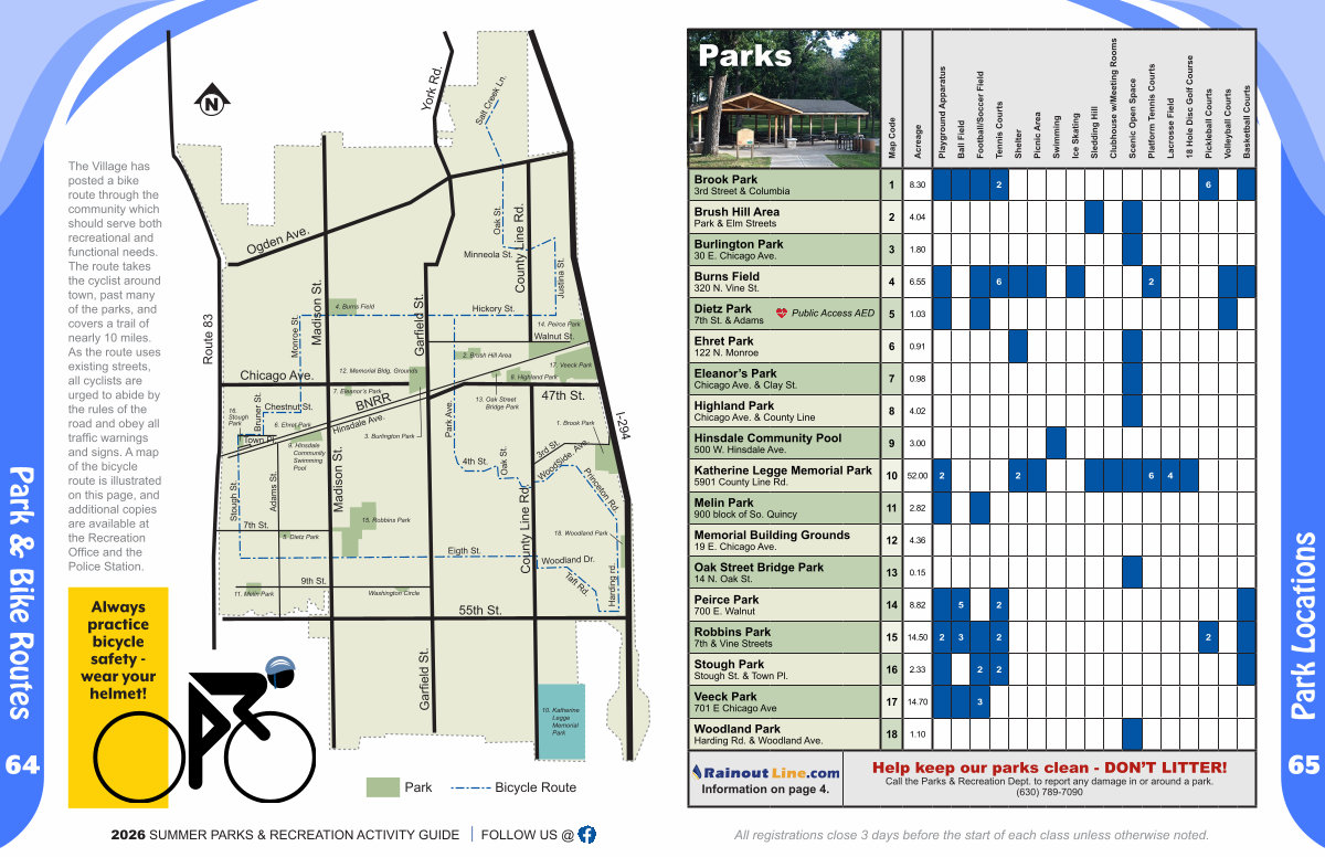 Help keep our parks clean- DON’ T LITTER! Call the Parks & Recreation Dept. to report any damage in or around a park.( 630) 789-7090