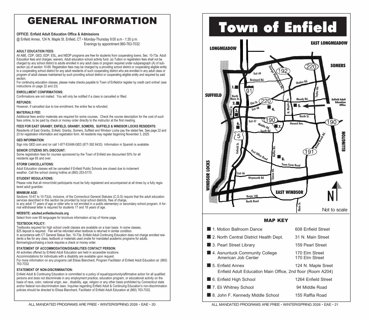 OFFICE: Enfield Adult Education Office & Admissions @ Enfield Annex, 124 N. Maple St. Enfield, CT • Monday-Thursday 9:00 a. m- 1:30 p. m.