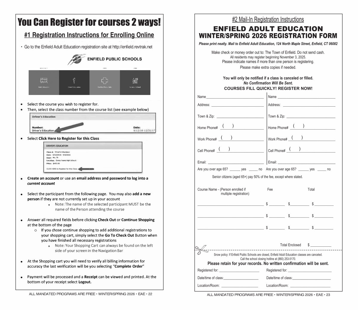 • Go to the Enfield Adult Education registration site at http:// enfield. revtrak. net