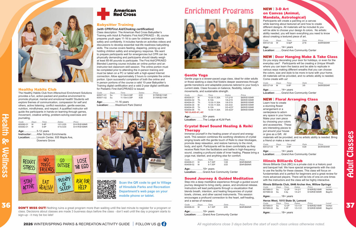 All registrations close 3 days before the start of each class unless otherwise noted.