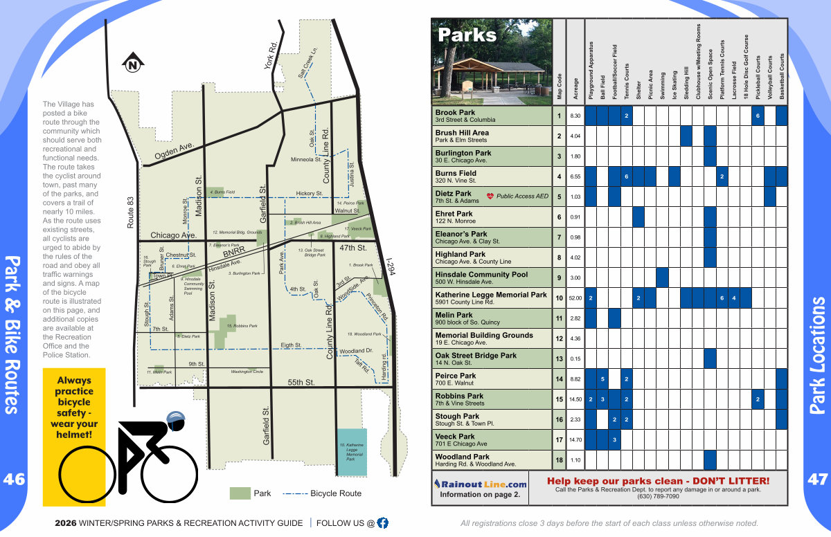 Help keep our parks clean- DON’ T LITTER! Call the Parks & Recreation Dept. to report any damage in or around a park.( 630) 789-7090