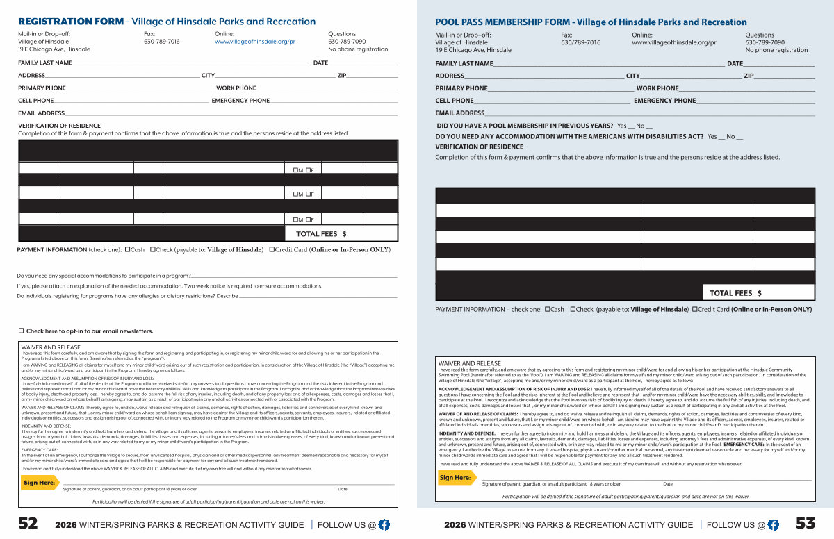 REGISTRATION FORM- Village of Hinsdale Parks and Recreation