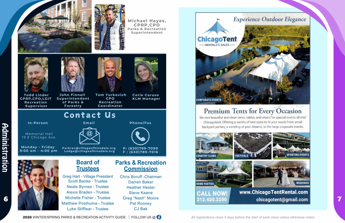 Parkrec @ villageofhinsdale. org Lodge @ villageofhinsdale. org