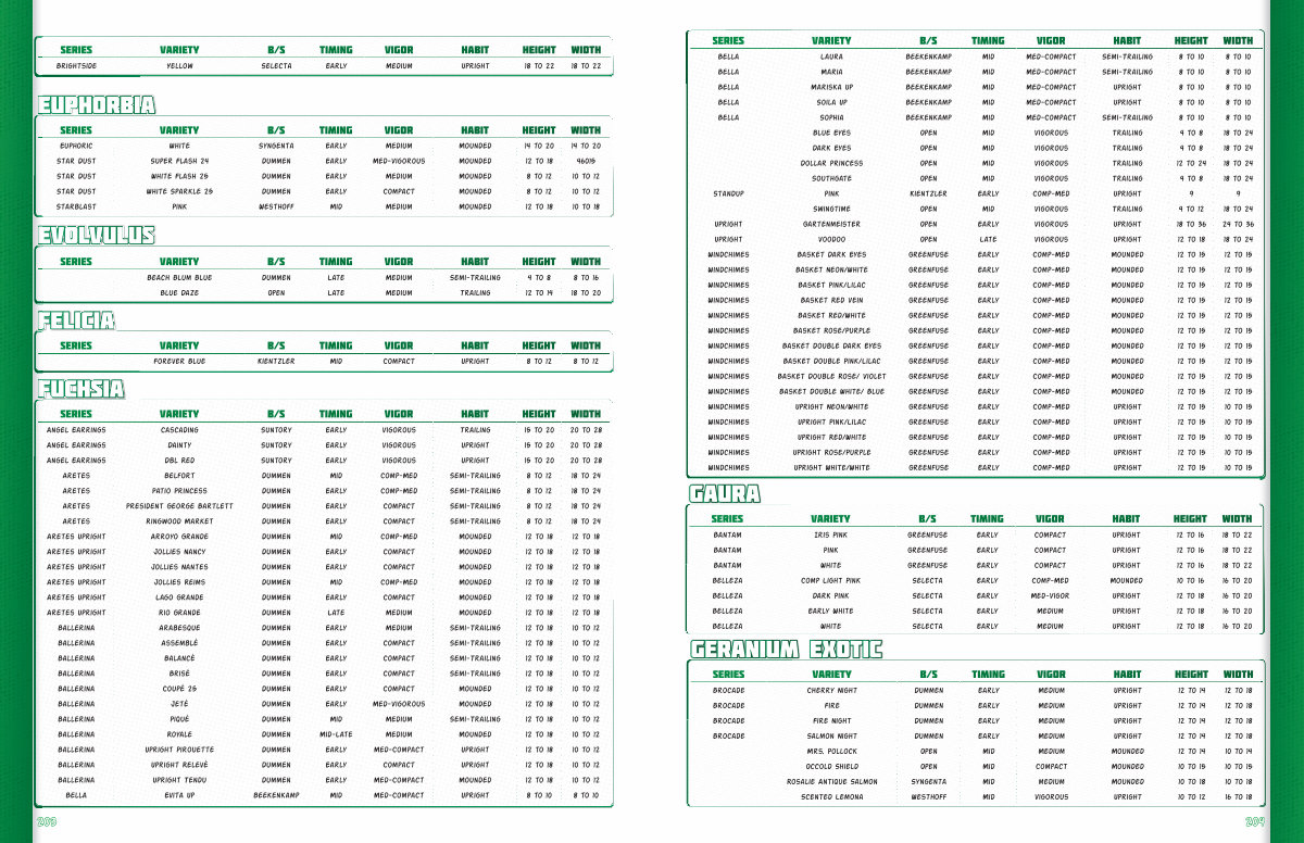 Series Variety B / S Timing Vigor Habit Height Width