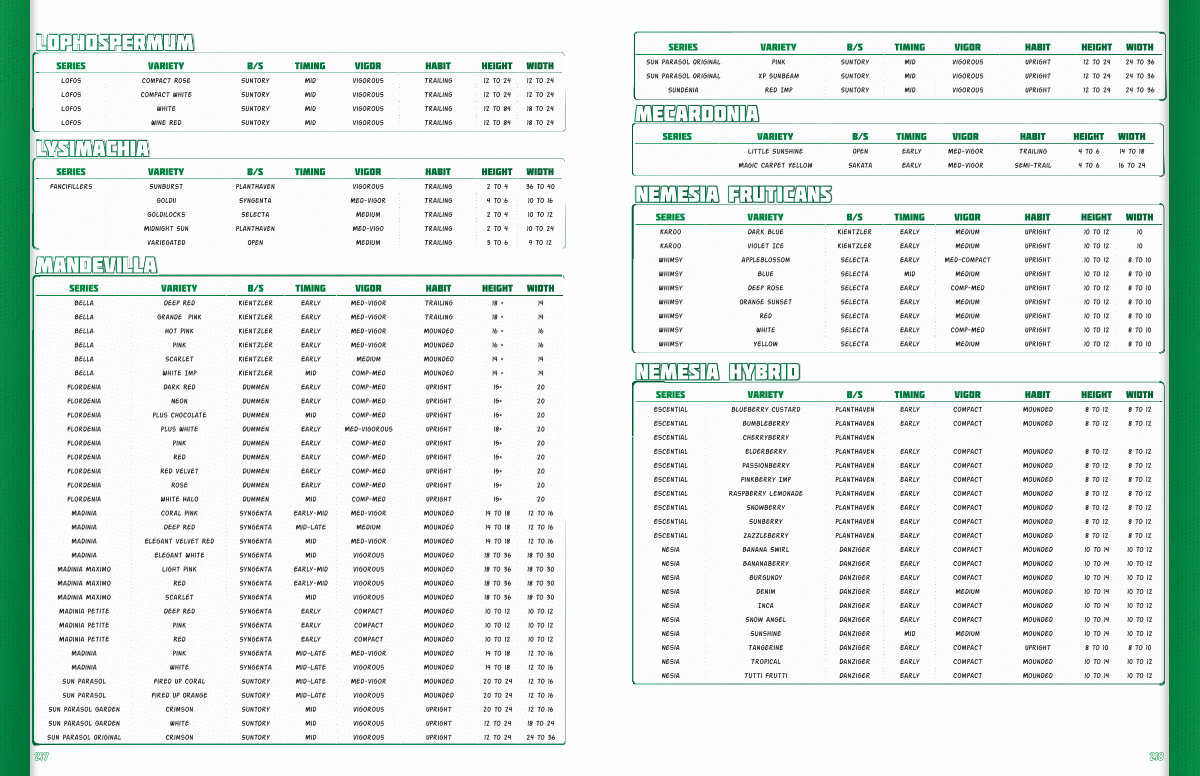 Series Variety B / S Timing Vigor Habit Height Width