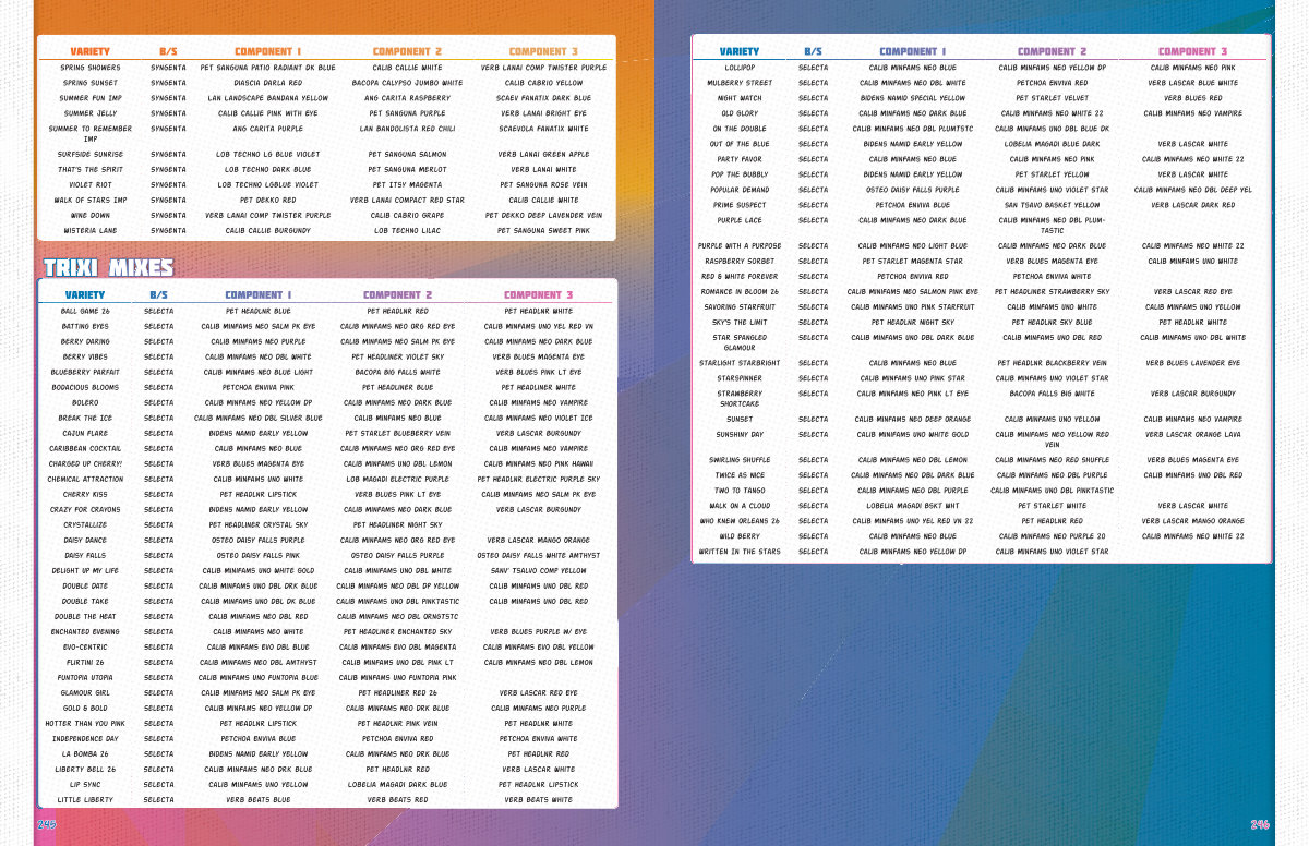 Lollipop Selecta Calib MinFams Neo Blue Calib MinFams Neo Yellow Dp Calib MinFams Neo Pink Mulberry Street Selecta Calib MinFams Neo Dbl White Petchoa EnViva Red Verb Lascar Blue White Night Watch Selecta Bidens Namid Special Yellow Pet Starlet Velvet Verb Blues Red Old Glory Selecta Calib MinFams Neo Dark Blue Calib MinFams Neo White 22 Calib MinFams Neo Vampire On the Double Selecta Calib MinFams Neo Dbl PlumTstc Calib MinFams Uno Dbl Blue Dk Out Of The Blue Selecta Bidens Namid Early Yellow Lobelia Magadi Blue Dark Verb Lascar White Party Favor Selecta Calib MinFams Neo Blue Calib MinFams Neo Pink Calib MinFams Neo White 22 Pop The Bubbly Selecta Bidens Namid Early Yellow Pet Starlet Yellow Verb Lascar White Popular Demand Selecta Osteo Daisy Falls Purple Calib MinFams Uno Violet Star Calib MinFams Neo Dbl Deep Yel Prime Suspect Selecta Petchoa Enviva Blue San Tsavo Basket Yellow Verb Lascar Dark Red