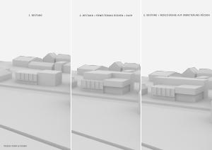 1 . BESTAND 2 . BESTAND + ERWEITERUNG RÜCKEN + DACH 2 . BESTAND + REDUZIERUNG AUF ERWEITERUNG RÜCKEN