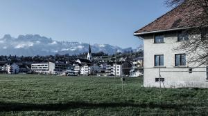 Fig . 49 The Schuhmacher ‘ s building and the village centre in the back