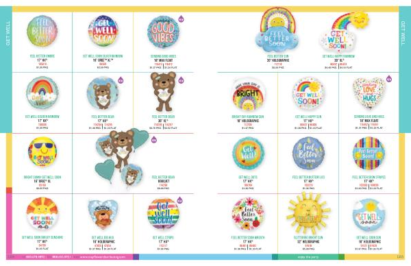 GET WELL SOON SUN 18 " HOLOGRAPHIC 91921 91920 $ 1.37 PKG $ 1.24 FLAT enjoy the party 125