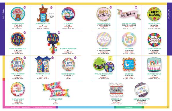 CANDLE BDAY TO YOU 18 " HOLOGRAPHIC 78813 78812 $ 1.37 PKG $ 1.24 FLAT iridescent birthday confetti 18 " HOLOGRAPHIC 103611 103612 $ 1.83 PKG $ 1.72 FLAT enjoy the party 55