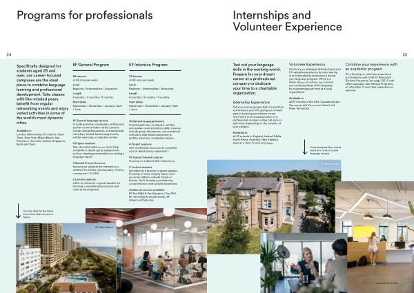 An internship or volunteer experience is included as part of all EF Advanced Diploma Programs ( see page 22 ). For all other Language Year Abroad Programs , an internship or volunteer experience is optional .