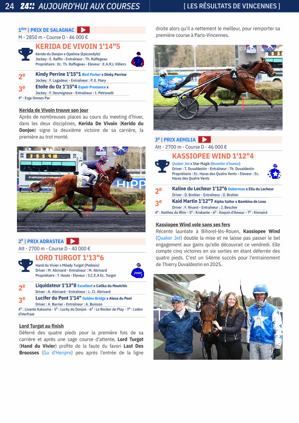 24 AUJOURD ' HUI AUX COURSES [ LES RÉSULTATS DE VINCENNES ]
