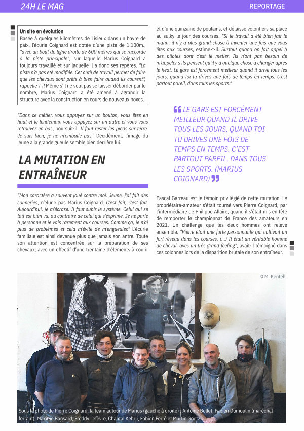 Pascal Garreau est le témoin privilégié de cette mutation. Le propriétaire-amateur s’était tourné vers Pierre Coignard, par l’intermédiaire de Philippe Allaire, quand il s’était mis en tête de remporter le championnat de France des amateurs en 2021. Un challenge que les deux hommes ont relevé ensemble. "Pierre était une forte personnalité qui cultivait un fort réseau dans les courses. (…) Il était un véritable homme de cheval , avec un très grand feeling", avait-il témoigné dans ces colonnes lors de la disparition brutale de son entraîneur.