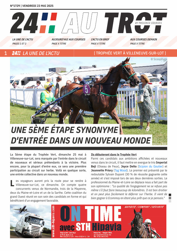 Ils débuteront dans le Trophée Vert Parmi ces candidats aux ambitions affichées et nouveaux venus dans le circuit, il faut mettre en exergue le trio Imperial Beji( Oiseau de Feux), Joyce Delto( Scipion du Goutier) et Jeannette Priory( Tag Wood). Le premier est présenté par le redoutable Sylvain Dupont( 30 % de réussite gagnante cette année) et s ' est imposé lors de ses deux dernières sorties. Le professionnel du Maine-et-Loire se déplace nous a fait part de son optimisme: " La qualité de l’ engagement ne se refuse pas même s’ il faut faire beaucoup de kilomètres. Il est bon droitier et on peut plus facilement le déferrer sur l’ herbe. Il vient de bien gagner à Ecommoy en étant plus prêt que ce je pensais."