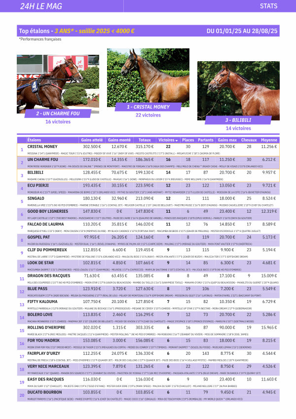 Top étalons- 3 ANS *- saillie 2025 < 4000 € DU 01 / 01 / 25 AU 28 / 08 / 25