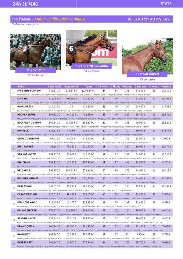 1- FACE TIME BOURBON 2- LOVE YOU 54 victoires