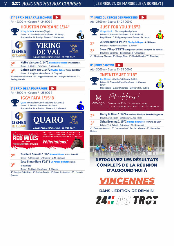 7 AUJOURD ' HUI AUX COURSES [ LES RÉSULT. DE MARSEILLE( A BORELY) ]
