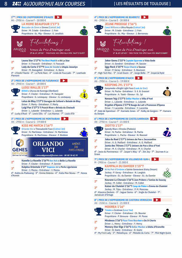 8 AUJOURD ' HUI AUX COURSES [ LES RÉSULTATS DE TOULOUSE ]