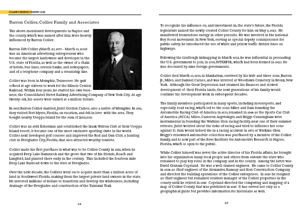 Over the next decade, the Colliers went on to acquire more than a million acres of land in Southwest Florida, making them the largest private land owners in the state. He invested millions of dollars to transform and develop the wilderness, including drainage of the Everglades and construction of the Tamiami Trail.