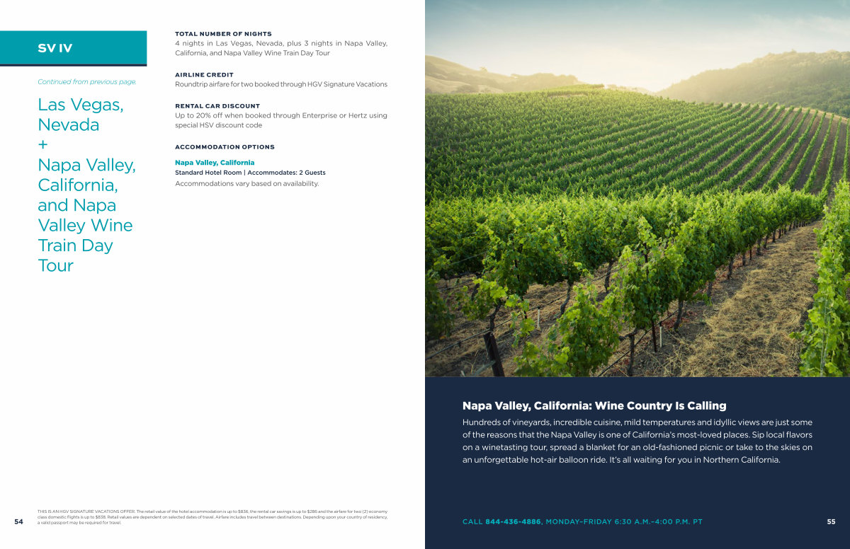 THIS IS AN HGV SIGNATURE VACATIONS OFFER. The retail value of the hotel accommodation is up to $ 836, the rental car savings is up to $ 286 and the airfare for two( 2) economy class domestic flights is up to $ 838. Retail values are dependent on selected dates of travel. Airfare includes travel between destinations. Depending upon your country of residency, a valid passport may be required for travel.
