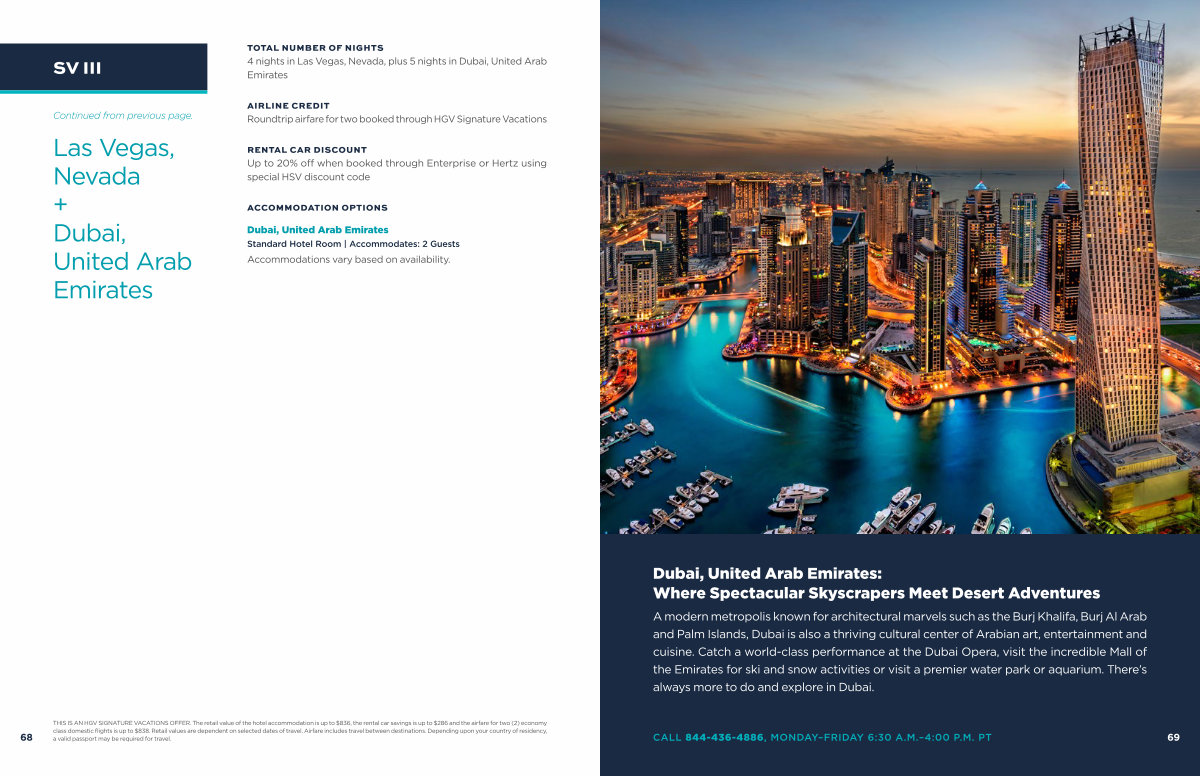 THIS IS AN HGV SIGNATURE VACATIONS OFFER. The retail value of the hotel accommodation is up to $ 836, the rental car savings is up to $ 286 and the airfare for two( 2) economy class domestic flights is up to $ 838. Retail values are dependent on selected dates of travel. Airfare includes travel between destinations. Depending upon your country of residency, a valid passport may be required for travel.