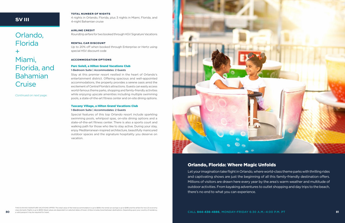 THIS IS AN HGV SIGNATURE VACATIONS OFFER. The retail value of the hotel accommodation is up to $ 836, the rental car savings is up to $ 286 and the airfare for two( 2) economy class domestic flights is up to $ 838. Retail values are dependent on selected dates of travel. Airfare includes travel between destinations. Depending upon your country of residency, a valid passport may be required for travel.