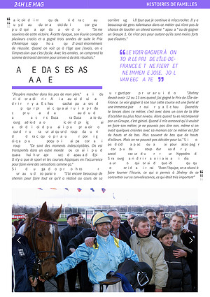 " J’ espère marcher dans les pas de mon père." À la veille du Prix de Normandie-Étrier 5 Ans Finale au mois de juin l’ an dernier, Jérémy Van Eeckhaute ne cachait pas la force de l’ exemple que représentait ce qu’ avait réussi son père dans cette épreuve à la fin des années 1990 et au début des années 2000 avec Grâce Ducal( Ultra Ducal) et Lazio du Bourg( Tadzio de la Motte). Cette victoire de prestige s’ est fait attendre de six mois de plus. Mais il peut se prévaloir à son tour d’ être un entraîneur vainqueur de Groupe 1 dans un Prix de l’ Île-de-France que son père a justement remporté vingtcinq ans plus tôt, à l’ époque où il n’ était pas encore labellisé Groupe 1. " Ce sont des moments indescriptibles. On est transportés dans un autre monde, nous confiait-il plus de quarante-huit heures après le succès de Kapaula de l’ Epine. Il n’ y a que le sport et les courses hippiques en l’ occurrence pour faire vivre des sensations comme ça." S ' il est devenu l ' égal de son père, son héros, le fils reste mesuré au jeu des comparaisons. " J’ ai encore beaucoup de chemin pour faire tout ce qu ' il a réalisé au cours de sa carrière, juge-t-il. Il faut que je continue à m’ accrocher. Il y a beaucoup de gens talentueux dans ce métier qui n’ ont pas la chance de toucher un cheval comme " Kapaula " ou de gagner un Groupe 1. Ce n’ est pas pour autant qu’ ils sont moins forts que d’ autres."