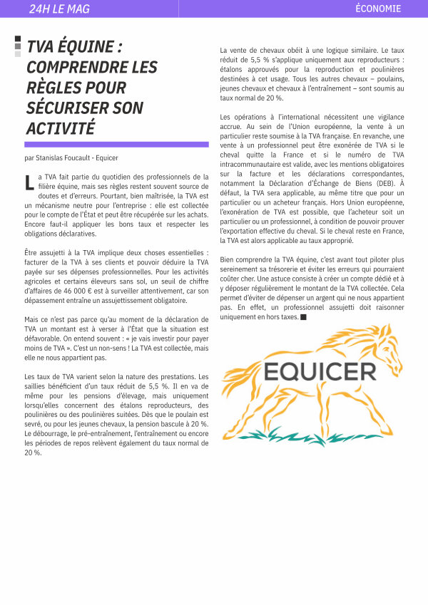 TVA ÉQUINE: COMPRENDRE LES RÈGLES POUR SÉCURISER SON ACTIVITÉ