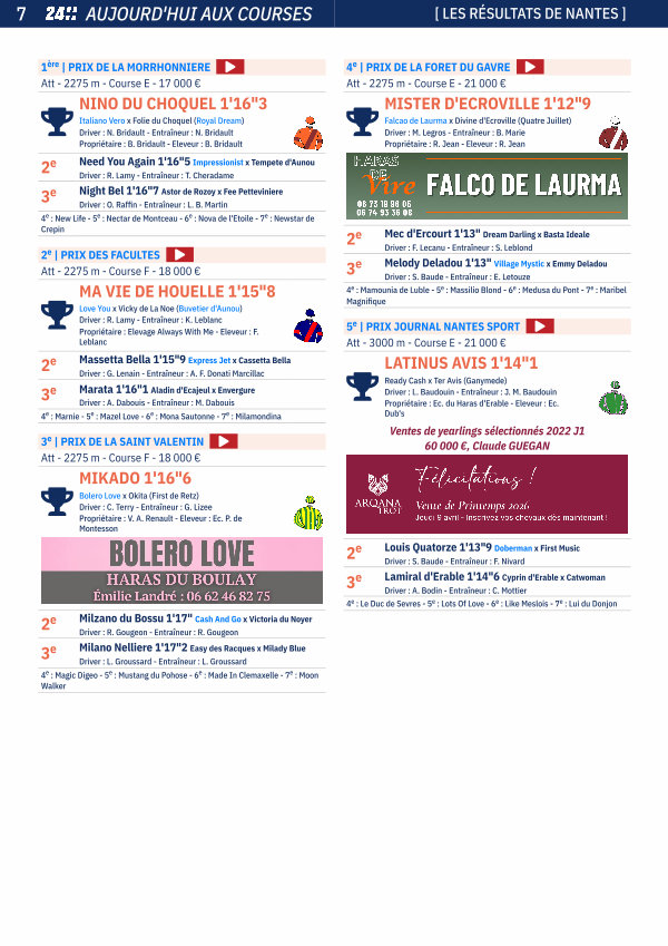 7 AUJOURD ' HUI AUX COURSES [ LES RÉSULTATS DE NANTES ]