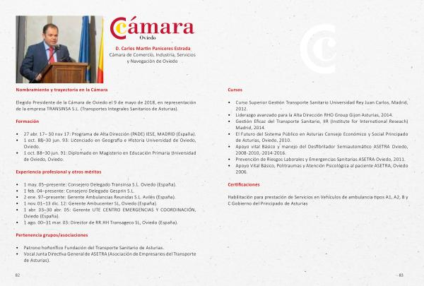 Elegido Presidente de la Cámara de Oviedo el 9 de mayo de 2018 , en representación de la empresa TRANSINSA S . L . ( Transportes Integrales Sanitarios de Asturias ).