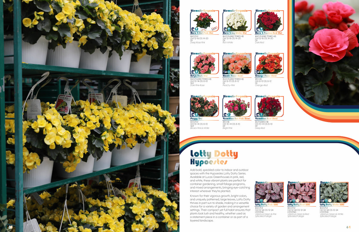 Add bold, speckled color to indoor and outdoor spaces with the Hypoestes Lotty Dotty Series. Available at Lucas Greenhouses in pink, red, and white, these vibrant plants are perfect for container gardening, small foliage programs, and mixed arrangements, bringing eye-catching interest wherever they’ re planted. |