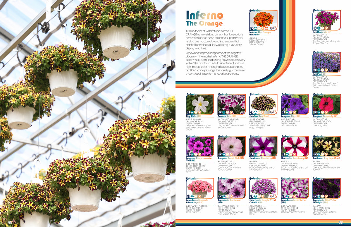 Turn up the heat with Petunia Inferno THE ORANGE – a truly striking variety that lives up to its name with unique neon color and superb habits. Its vigorous, horizontal branching ensures that plants fill containers quickly, creating a lush, fiery display in no time.