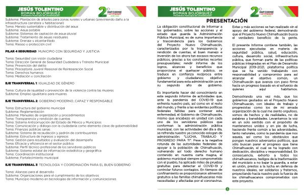 Es importante hacer del conocimiento en este segundo informe de actividades que , ante la pandemia del COVID-19 que enfrenta nuestro país , así como en el resto del mundo , y frente a las evidentes políticas federales fallidas para contener esta enfermedad , el Gobierno de Chimalhuacán , mismo que encabezo en unidad con cada uno de los servidores públicos que conforman la administración pública municipal , con las actividades del día a día , se refrenda nuestro ya conocido eslogan de administración : “ LUCHA , TRABAJO Y PROGRESO PARA TI ”. Pese a la negativa rotunda de las autoridades federales de apoyar a la población de Chimalhuacán , vulnerando así todo derecho humano contenido en nuestra carta magna , el gobierno municipal siempre comprometido con el pueblo , ha aplicado miles de pruebas gratuitas para detectar el COVID-19 y controlar futuros contagios . En tiempos de confinamiento se proporcionaron alimentos gratuitos a las familias chimalhuacanas más necesitadas y afectadas por el coronavirus .