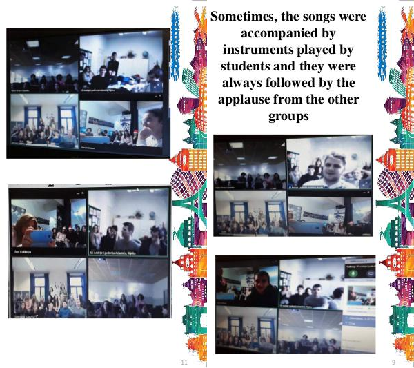 Sometimes, the songs were accompanied by instruments played by students and they were always followed by the applause from the other groups 9