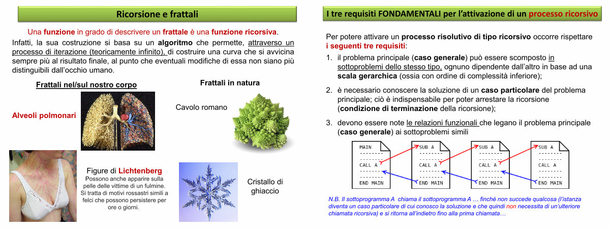 Una funzione in grado di descrivere un frattale è una funzione ricorsiva. Infatti, la sua costruzione si basa su un algoritmo che permette, attraverso un processo di iterazione( teoricamente infinito), di costruire una curva che si avvicina sempre più al risultato finale, al punto che eventuali modifiche di essa non siano più distinguibili dall’ occhio umano.