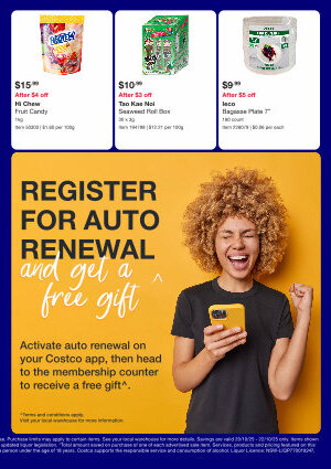 Terms and Conditions: Only valid in Costco warehouses located in Australia and while stock lasts. All items may not be available in every warehous are representations and colours and variants shown may not be available on sale. Liquor is not available in QLD and SA locations. WA is subject to page are accurate when posted and subject to change in the future. It is against the law to sell or supply alcohol to, or obtain alcohol on behalf of, a LIQP770016625, LIQP770017058. ACT-14005609. VIC-32061303, 32064440, 32065682, 32067781. WA-603213623419.
