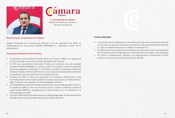 Elegido Presidente de la Cámara de Palencia el 26 de septiembre de 2018 , en representación de la empresa VIVEROS MERIMAR S . L ., dedicada al sector de la alimentación .